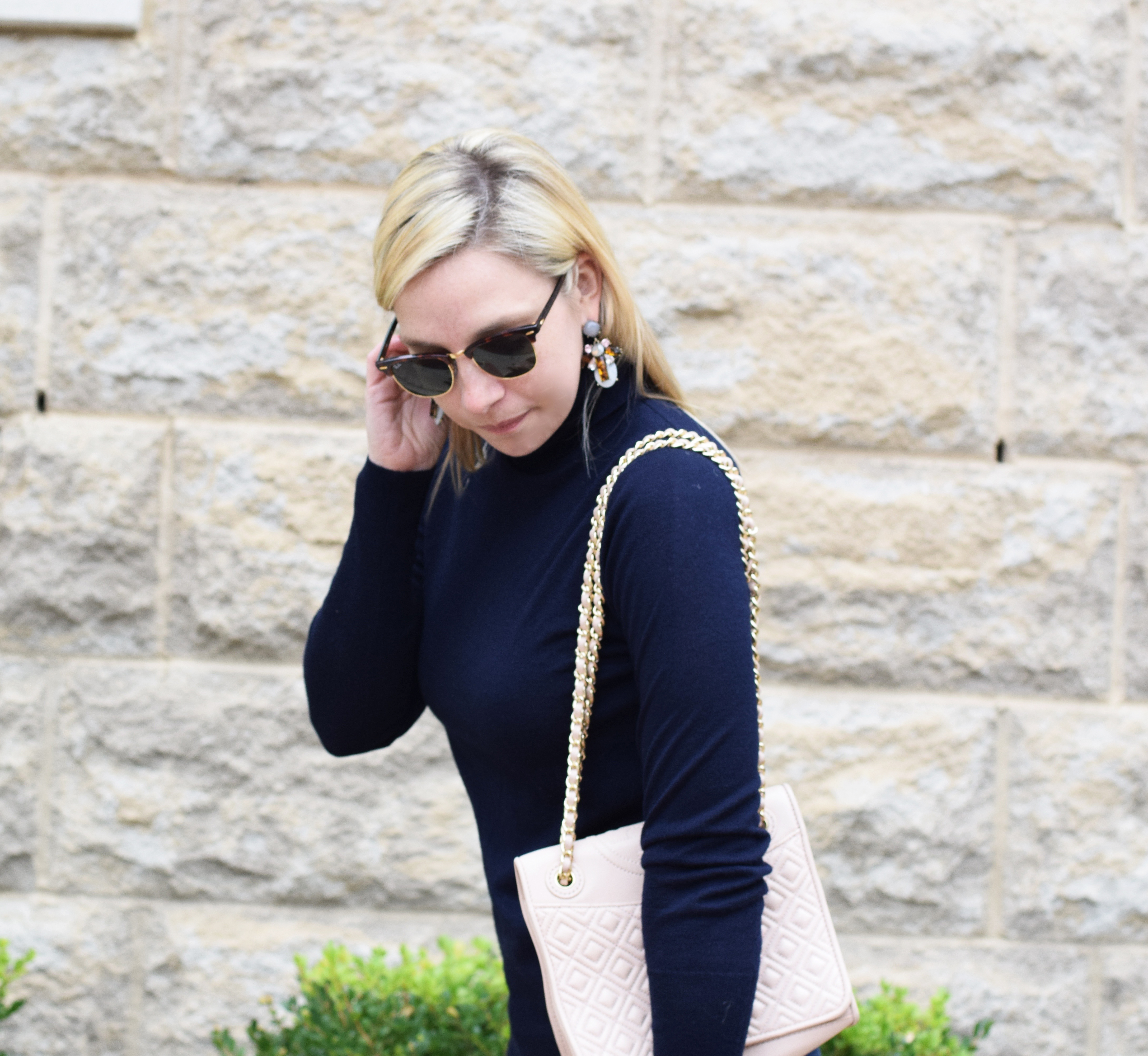 If there is one thing I am appreciative of in life, it is a monochromic look. Blues on blues, whites on whites, grey on grey. It is easy to do, looks effortless, and is always chic. With a monochromatic look you can play around with colorful accessories like these drop earrings, this blush handbag, and these boots. Really making them pop!