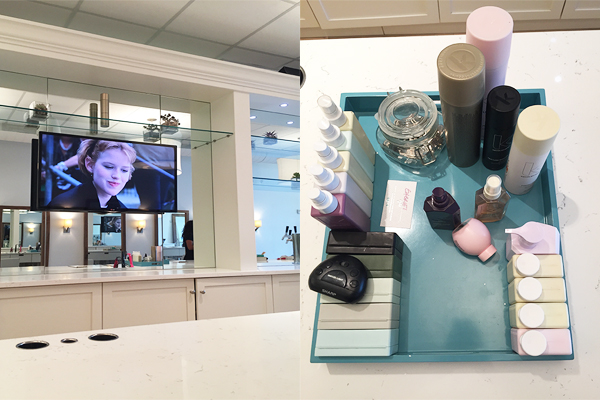 The Blowout Bar is such a cute place! The layout looks exactly like a bar, as if I was saddled up on a stool sipping French 75’s. Anyway, the first thing we did was get shampooed and conditioned. Always so relaxing to have done. Then we headed over to our seats and watched Pretty in Pink while the women worked wonders on our hair.