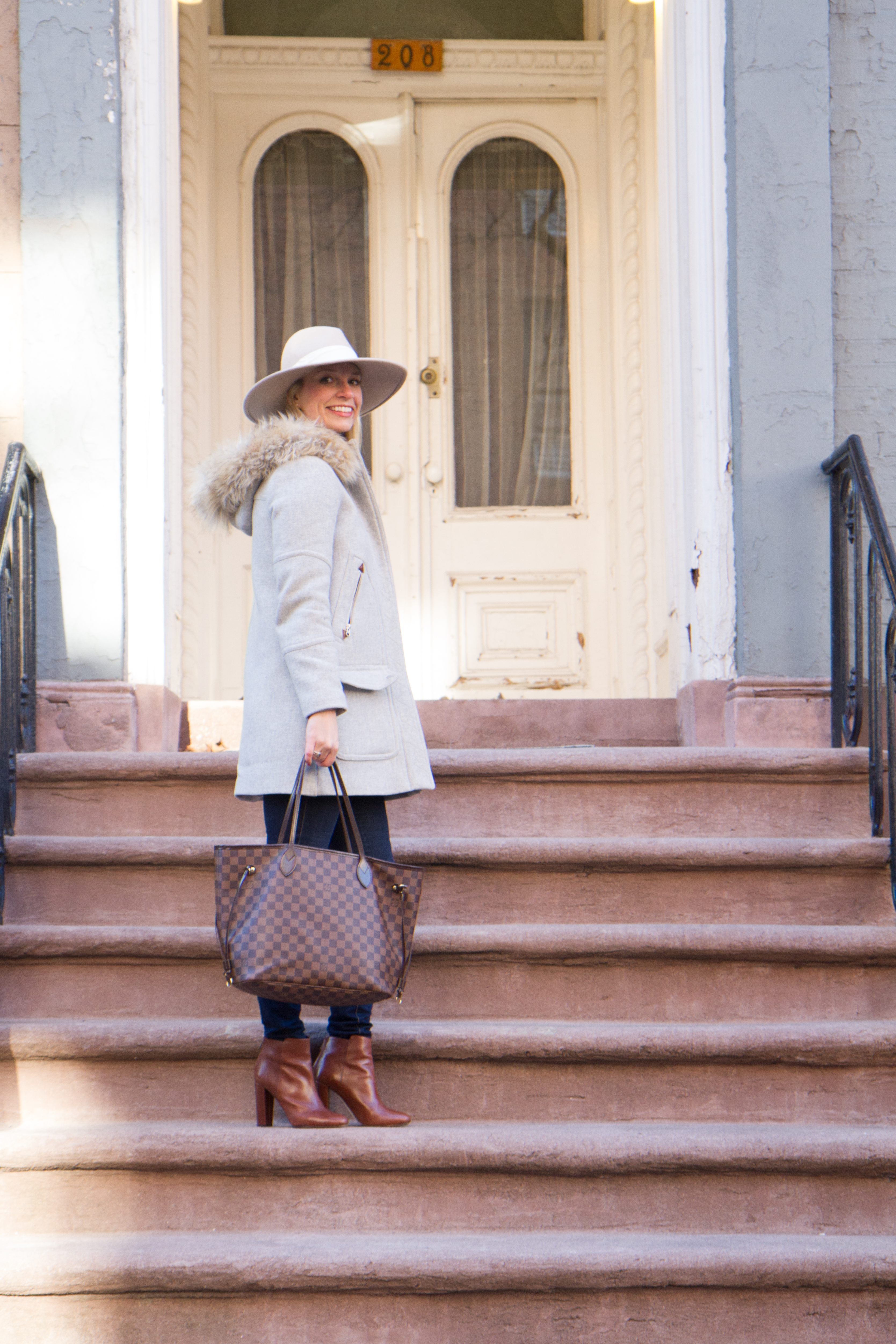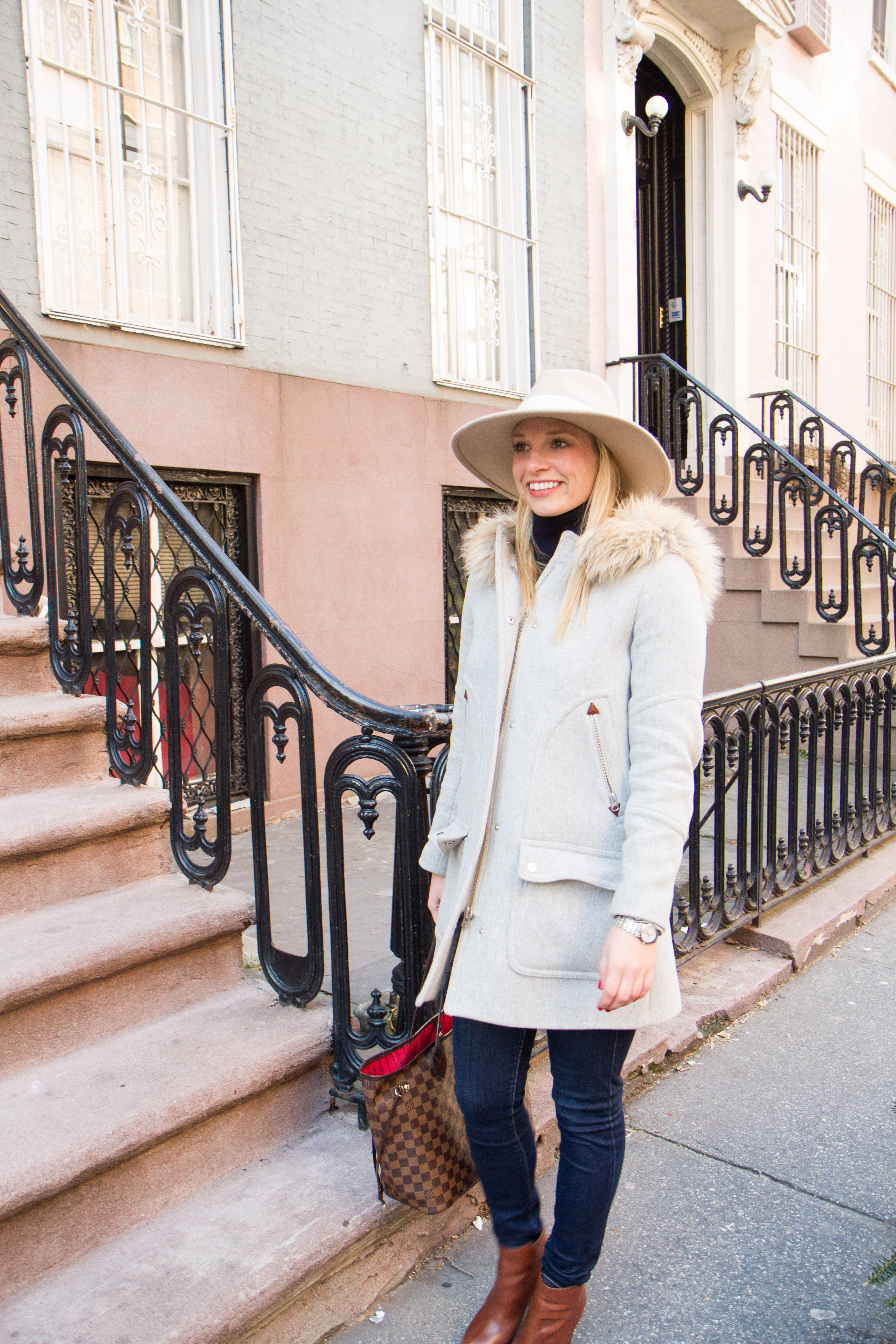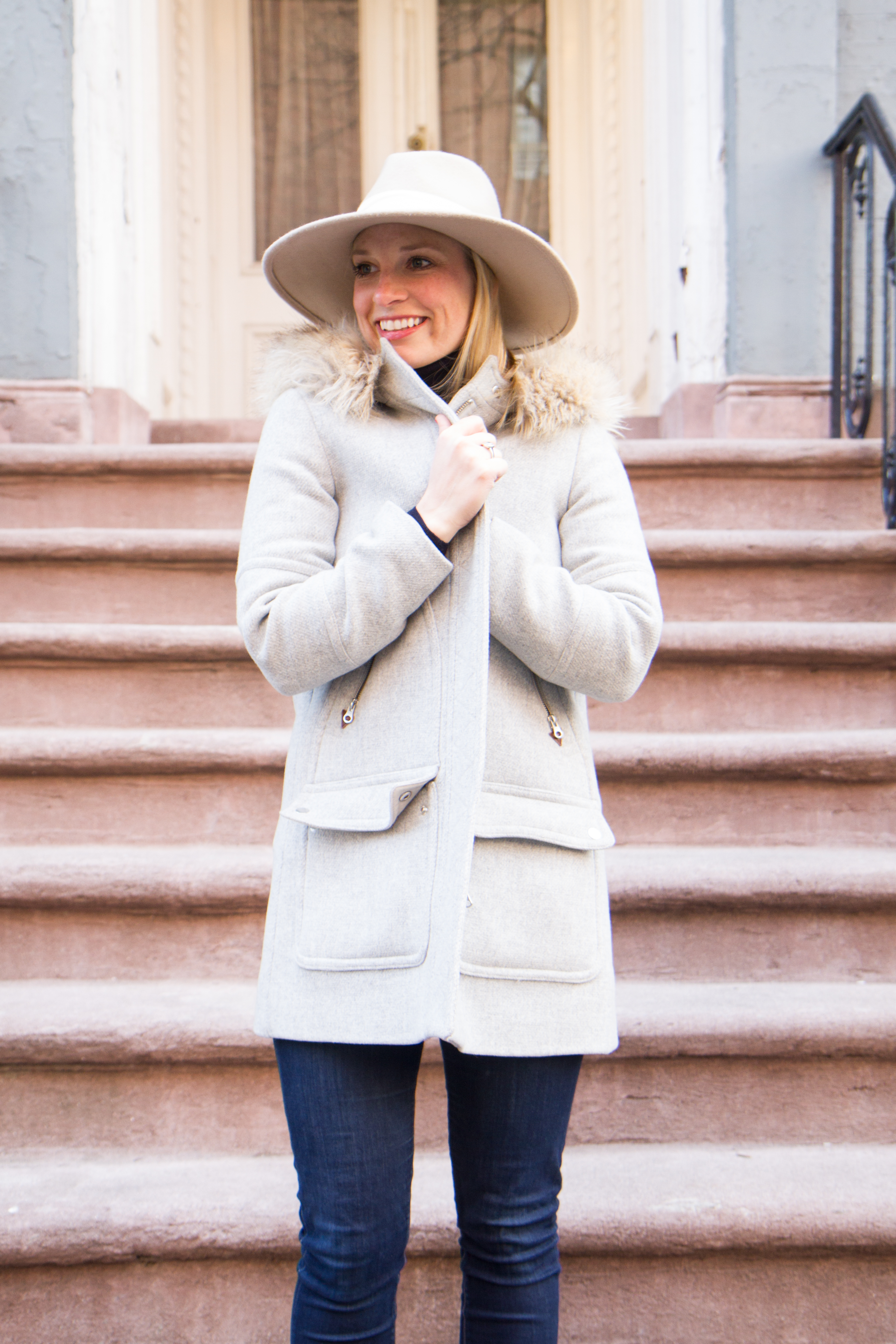 Since I can’t control Mother Nature, I will have to tolerate another few months of being bundled up. During the week I have been switching between this fur trim hooded coat and my puffy coat. A girl needs options ya know. A typical every day winter outfit would be staying in my PJS and not getting out of bed jeans, a simple sweater, boots, and a winter hat.