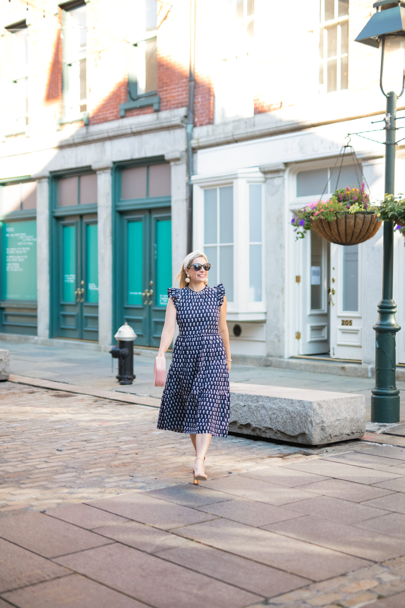 dress // shoes (similar) // handbag // headband // earrings // sunglasses